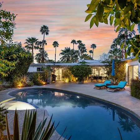 Die 2-Zimmer- Palm Springs Eco Mid-Century Urban Oasis Retreat liegt im Bezirk Palm Springs Uptown und bietet Gästen einen Außenpool mit einem Jacuzzi zur Entspannung.